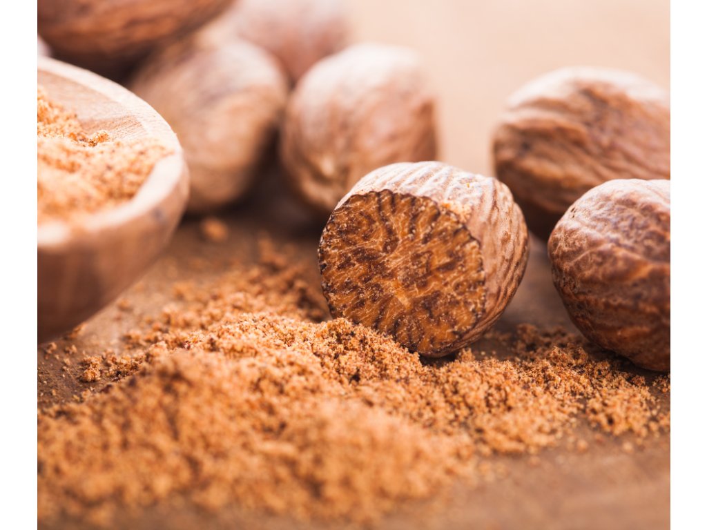 Muškátový oříšek se krásně mísí se sladšími citrusovými oleji, s dalšími kořeněnými vůněmi, s vavřínem, geraniem, petitgrainem a ylang-ylangem.